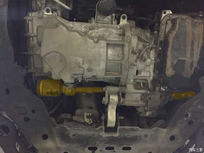 这张照片拍摄的角度很是考验我的腰力,我几乎都快要躺在地上了。图中被涂黄的就是左右的半轴了,日系发动机在密封系统真的很强势,小十年过去了,发动机居然一点漏油的痕迹都没有,