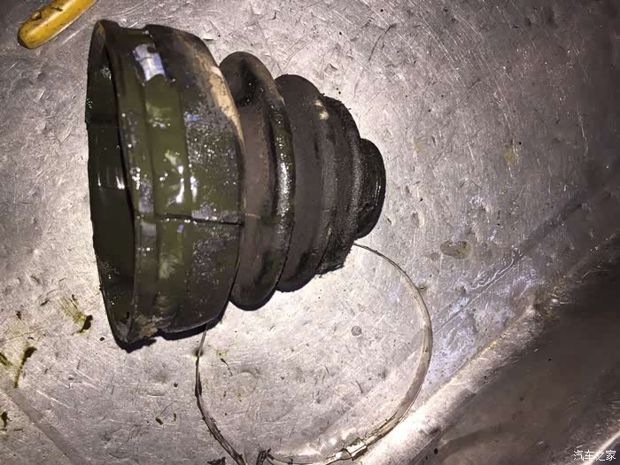另一侧球笼套发生了一样的问题,都是球笼套裂开了一道大口子。