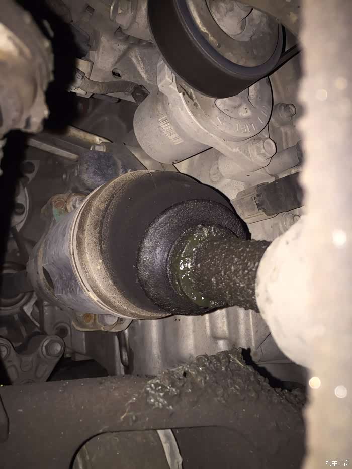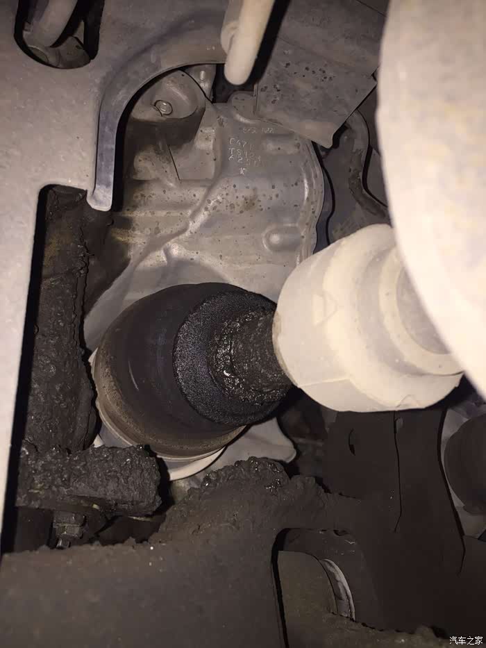 弯道王也并不是十全十美的,这不半轴的内球笼防尘套统统漏油了。在半轴的高速旋转下,半轴球笼套内部的球笼油会被巨大的离心力甩出来,然后,就被甩到了元宝梁上面。久而久之上面就布满了一层厚厚的油泥,当球笼内部的润滑油被甩出来很多的时候,球笼内部得不到润滑和冷却,在转弯的时候,急加速,球笼就会发出刺耳的异响。用不了多久这根半轴连同球笼就一起都废掉了。