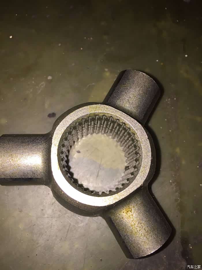 三枢,这东西目前就这么叫它吧,当然了这个是有方向的,一定不要装反,花键有斜坡的那一面对着半轴,目的是为了更好的让三枢和半轴接合,提高摩擦力的,装反了,半轴的卡簧卡不进去,容易造成危险。