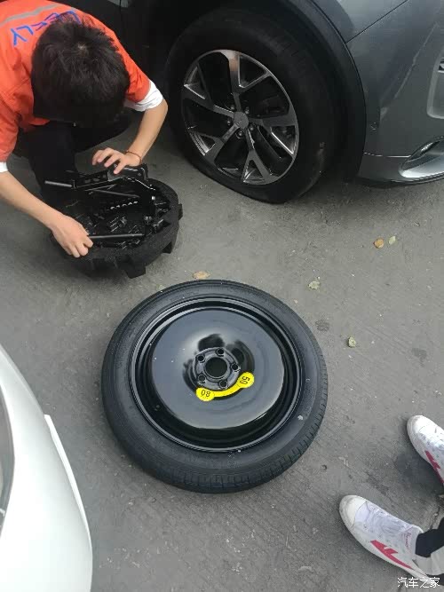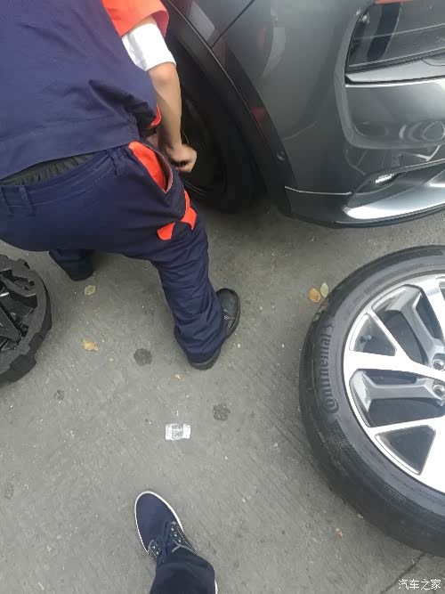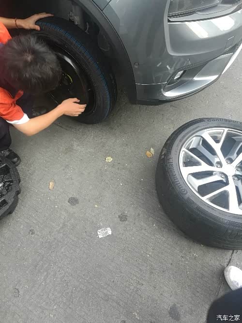 救援人员开始麻利的打开千斤顶,松螺丝,换备胎,行云流水,一气呵成。然后救援人员带着小灰的大脚去帮我补胎,我也开车去领克店等待补胎以后换上。我注意看了一下黑色小袋里送来的是一瓶水,一包坚果,两个小面包,重点是还有一张湿纸巾,这个很贴心,赞一个。