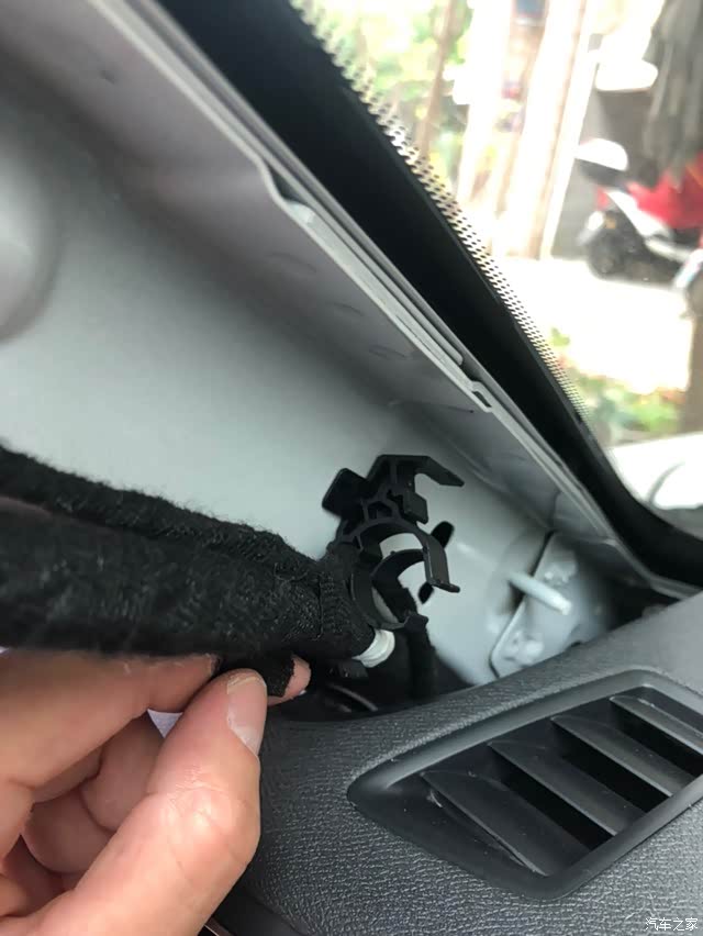 电线去到左边A柱的过程就不说了,动手能力强的人自然明白。