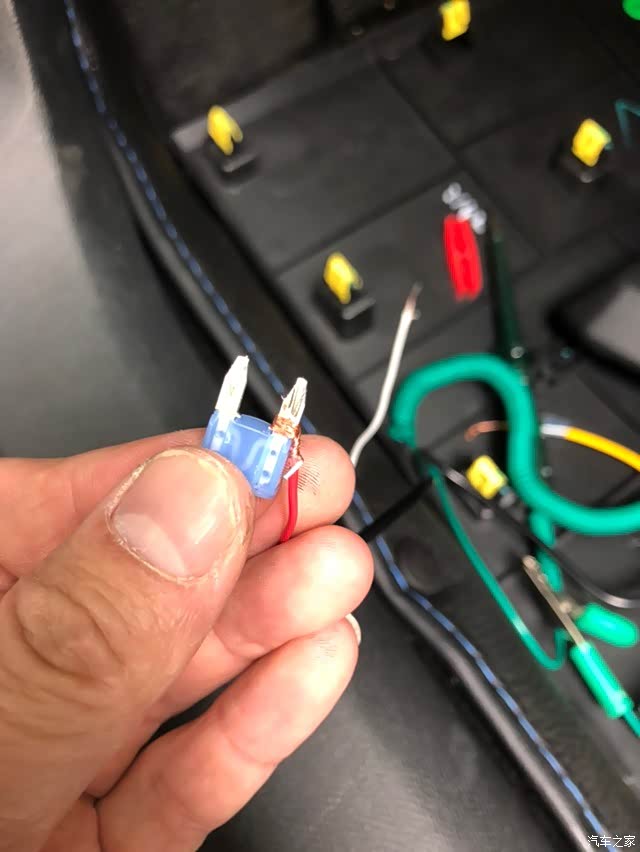 没有买取电器,也不想等了,所以就直接在保险丝上搭电了,弱电随便玩。这个保险丝车子通电后才会供电,需要停车监控的可以另找长通的电源。
