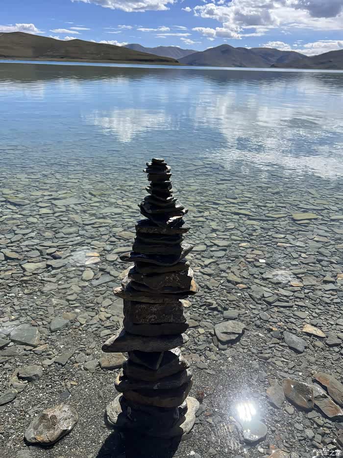 羊湖很蓝很漂亮,蔚蓝清澈的湖水下玛尼堆祈福,家人健康