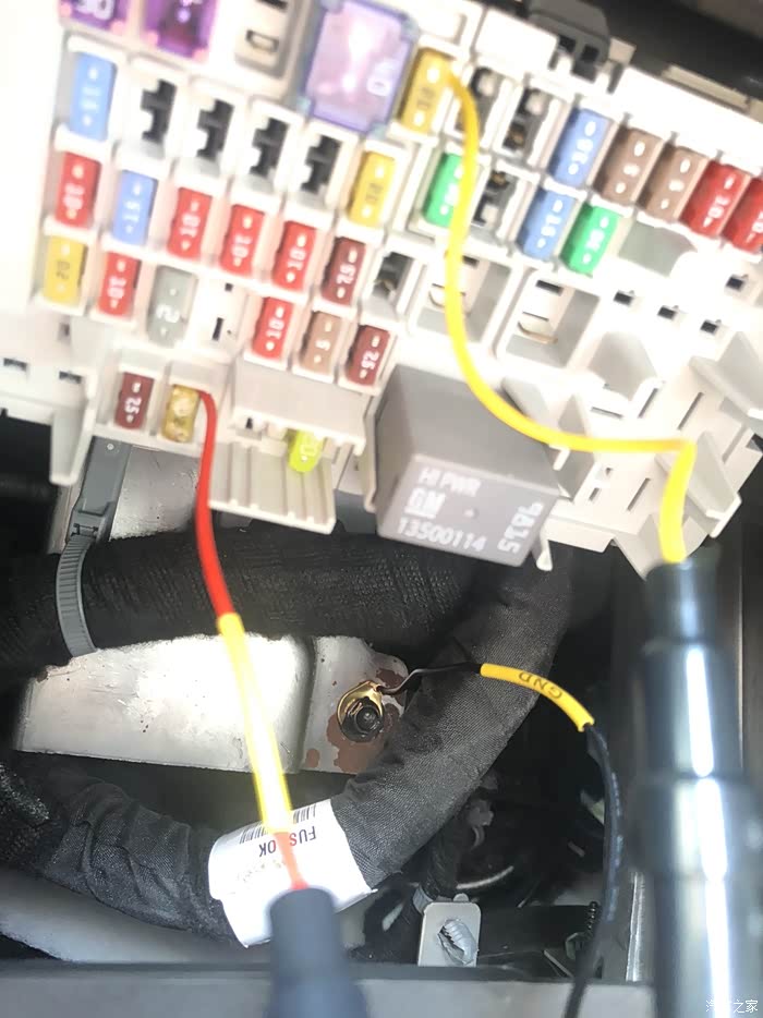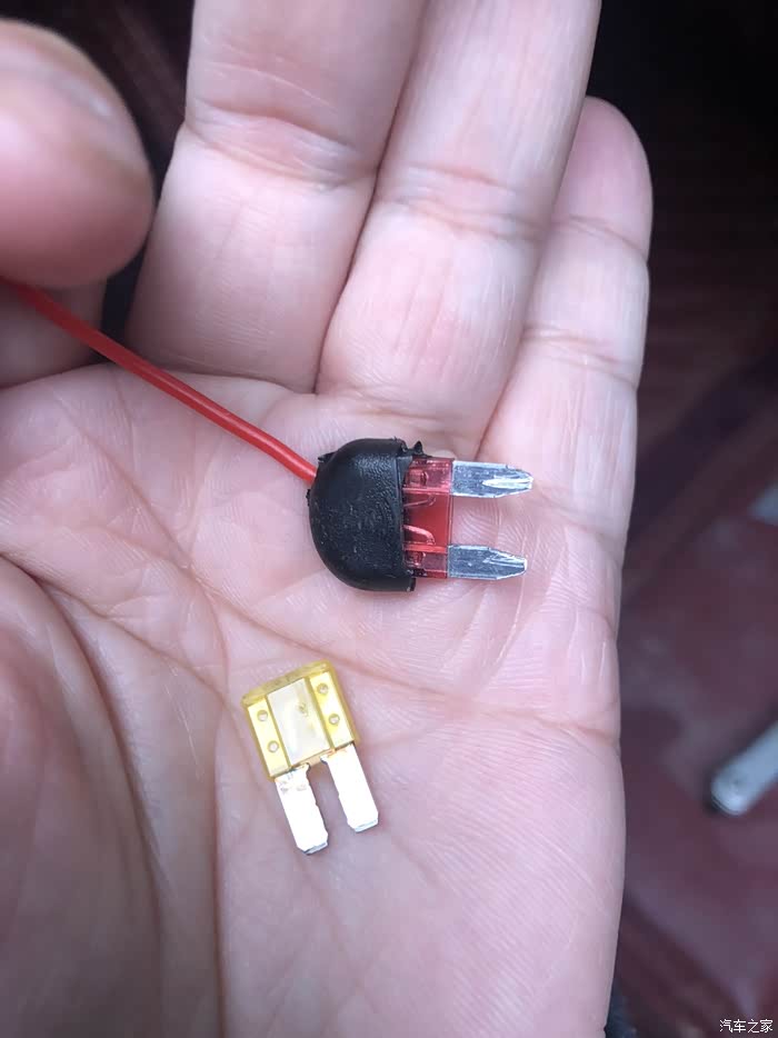 部完线发现保险丝接头不一样,配的是小号保险,车上常电和acc都是m2的保险,好吧,剪断缠绕在保险丝脚上插上了