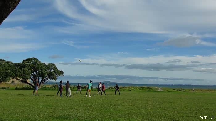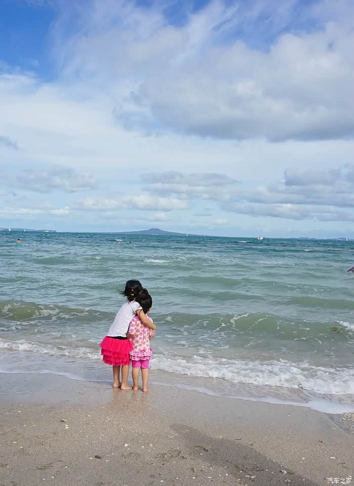大海中间,好多白帆。对面是奥克兰市中区,隐隐约约地看得见南半球的最高建筑----奥克兰的天空塔。