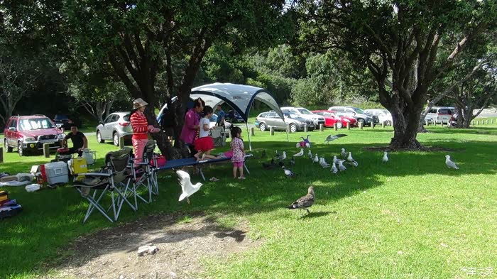 孔雀岛上有一个莎士比亚公园,风光很好,而且可以看海、拾贝、抓海胆、钓鱼、喂鸟、烧烤,是奥克兰人周末常去度假的地方。侄女婿带上了烧烤炉和食材,说是每次去玩都是一整天。