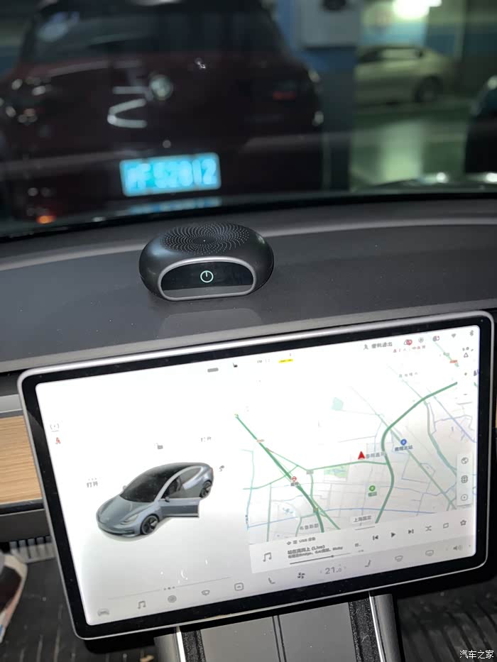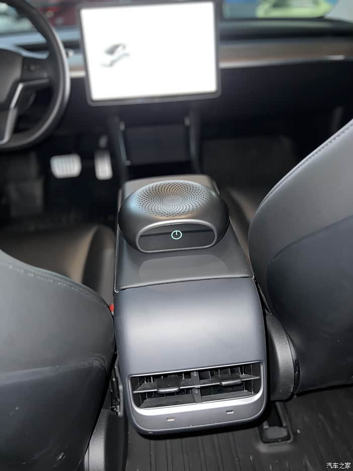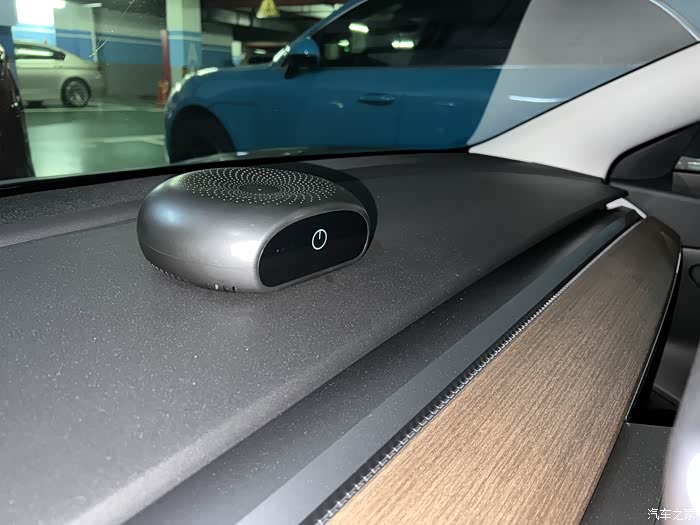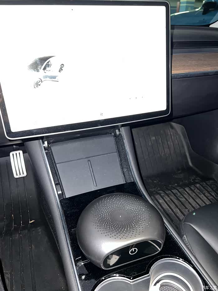 GS牌车载空气净化器简约时尚的外观,圆润而有艺术感的设计,使得与特斯拉model3的内饰风格相得益彰。