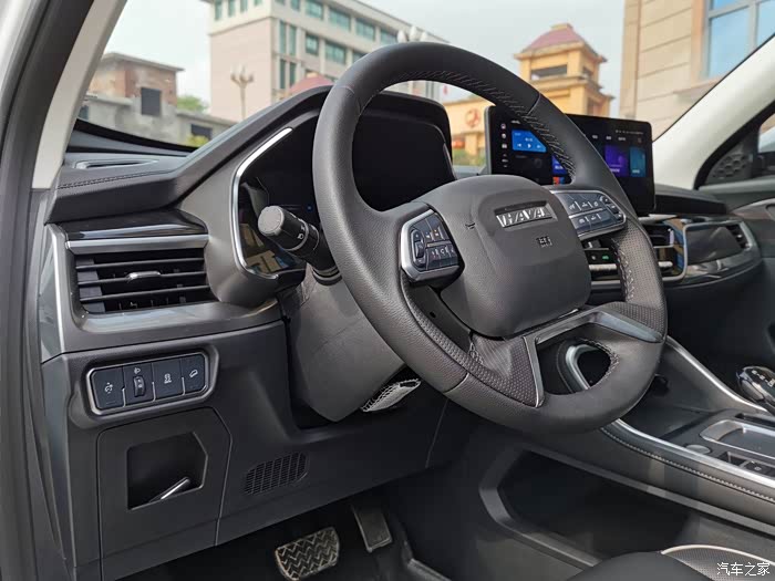 车内配置一点都不输外观,坐进车内各种设计简单明了,多功能方向盘,手感很饱满。