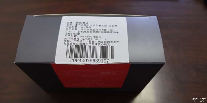 这款车载手机支架的品牌为观悦/易波,看起来很奇怪,但标签上确实就是这么写的,标签下面还有注释:“观悦”、“易波”均是深圳市贞观科技有限公司旗下产品,请放心购买。这说明对外,这款支架可能是以两个品牌名称出现的。