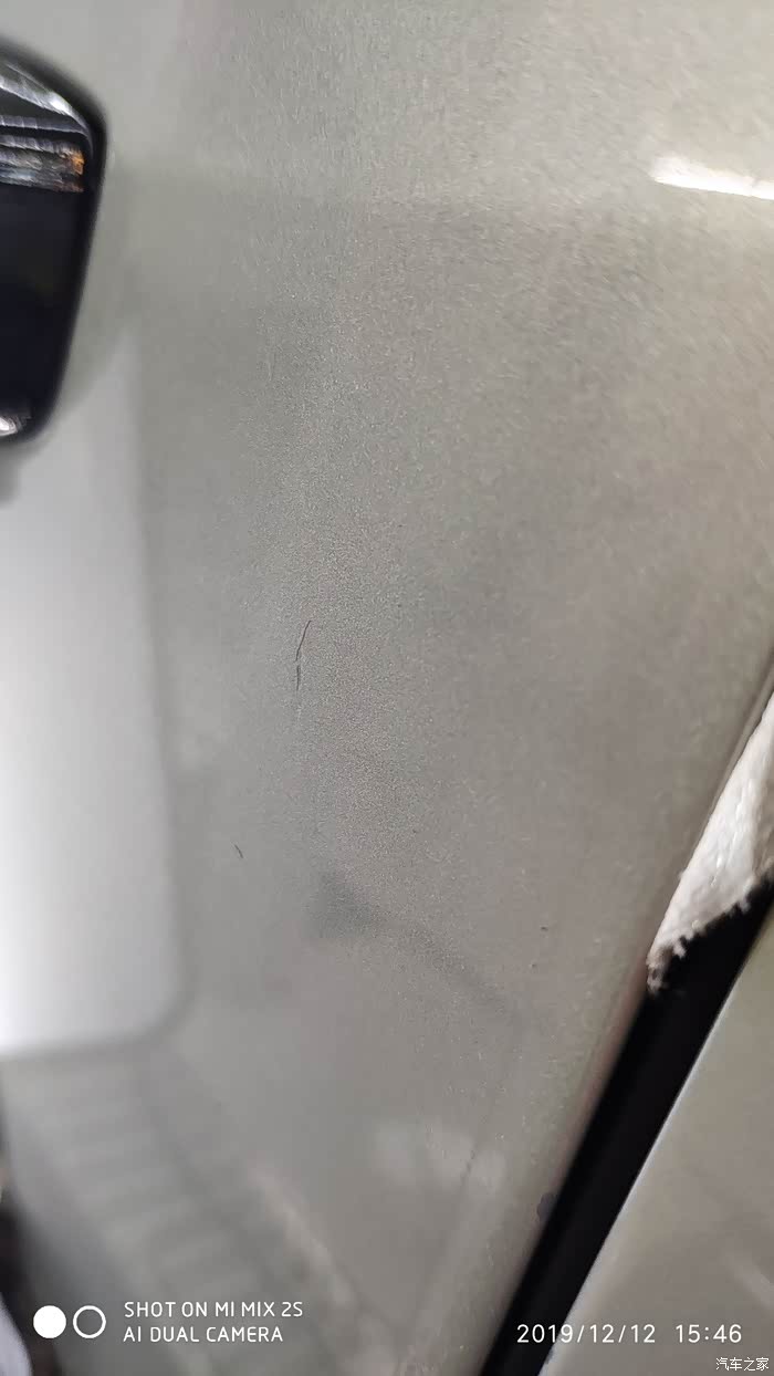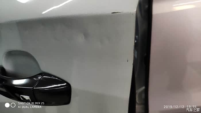 之前小区停车位没有固定,导致有时候比我晚回家的邻居为了主驾驶出来的方便贴着我的小e停,导致第二天一早急着出门送儿子上学的我开门经常撞在隔壁车辆的反光镜角上。两年下来,主驾驶这里已经是麻脸了。