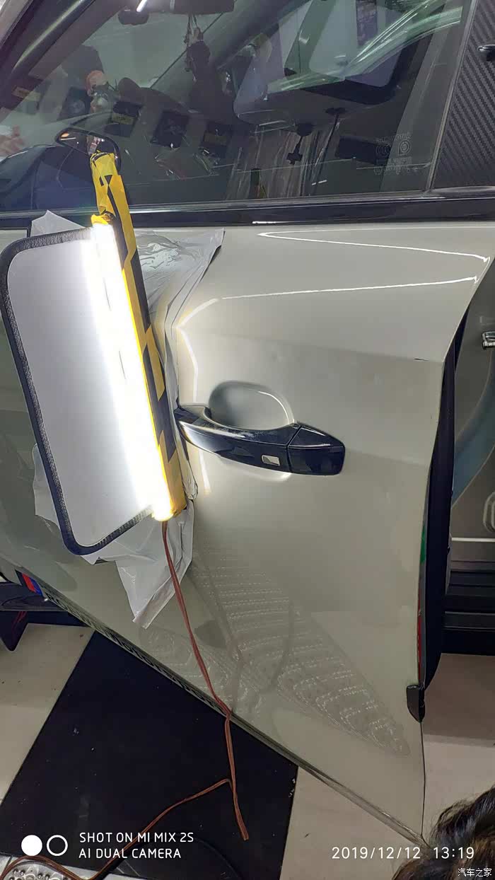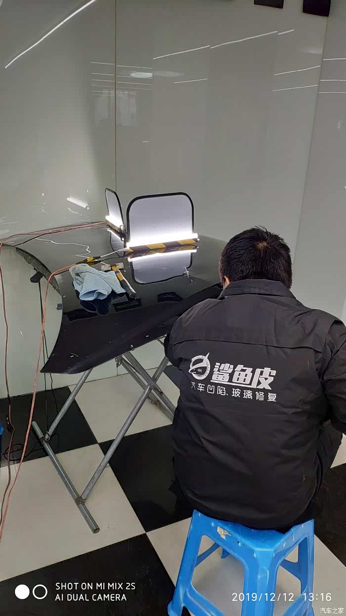 今年下半年,小区美丽家园改造的机会总算把车位固定住,从新划线停车。大家停车都开始规规矩矩了,我也就开始动了修复主驾驶车门的心思。实在不舍的原厂漆,依稀记得汽配城有鲨鱼皮修补车辆凹陷的,立马就去。