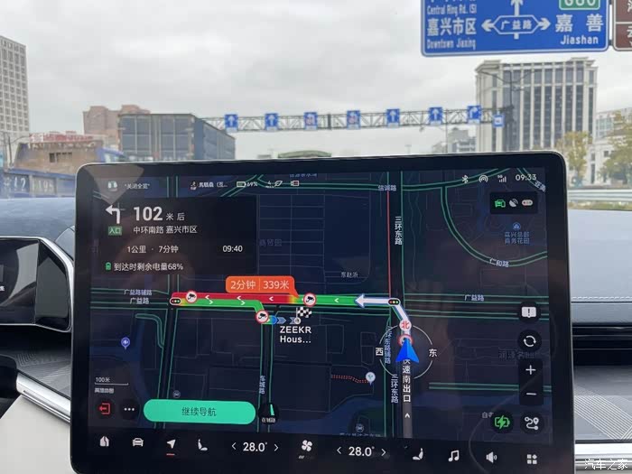 在与售后专员沟通到货情况后,前往极氪家维修尾灯。极氪家在嘉兴市区,距离我所在地有60公里,需要行驶一个半小时,极氪家对面马路那个红绿灯路口调头堵车堵的让人头疼,应该让政府有关部门改善一下,增加一个调头专用车道。处在杭州与嘉兴的中点线上,去哪都显得略微远了些!到达门卫处,看到是极氪车辆主动打开闸门,畅通无阻。
