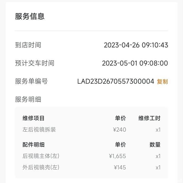 这次是家人倒车导致的事故,撞车第一时间打电话报保险报警,然后联系极氪在桐乡的售后网点领克4S店,但是领克回复说人保他们那边做不了,所以才有了第一次去极氪家体验售后的机会。因为需要先订配件到货才能维修,所以跟售后专员沟通好之后,在家耐心等待了一段时间。