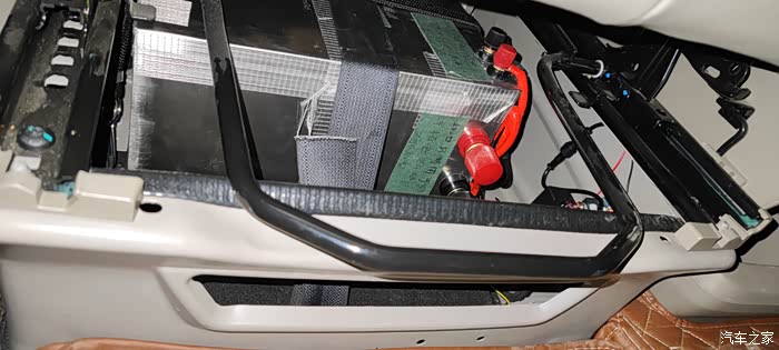 首先是副驾驶可以放置电瓶的尺寸,副驾驶底下可以最大放下高25cm*宽32*长32的电池壳尺寸,所以在这个范围内的盒子都可以放下,固定也很简单,找一条旧的安全带,把座椅底座拆松,蹦起来即可。我是在电池底下加了魔术贴,然后配合安全带固定,非常牢固。