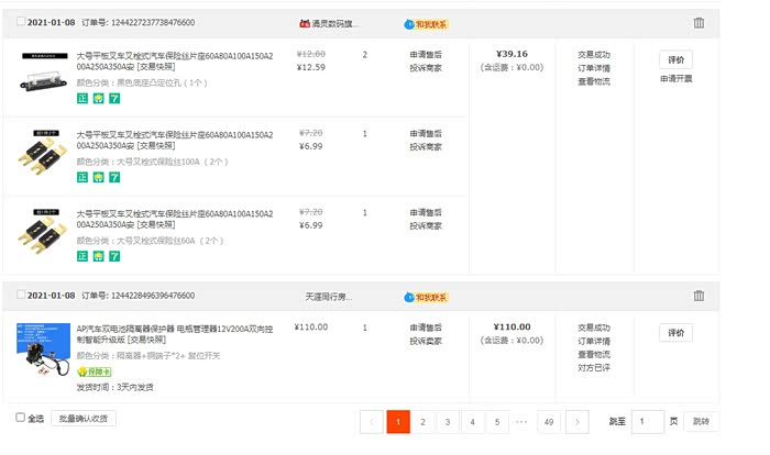 如果说我在行驶途中也在用电的话,总的电流不会超过50A。所以我选择了10平方的电线作为所有电路使用。价格也实惠,20块钱一米。