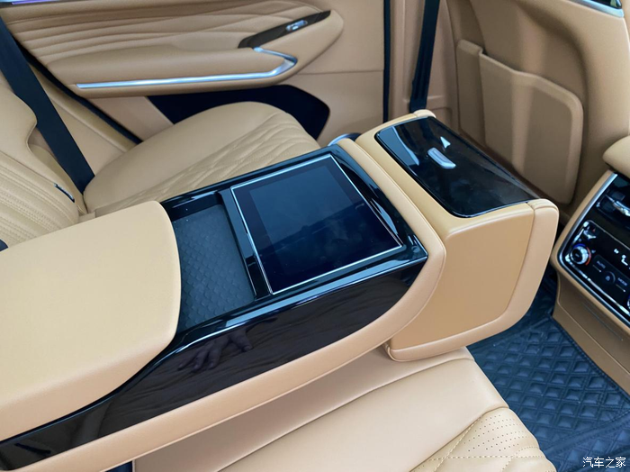 后排扶手宽大,在它的中间部位还嵌着一块液晶显示屏,可以通过显示屏调节空调温度、打开天窗、切换音乐,对于坐在后排的人来说,这简直就是老板待遇。