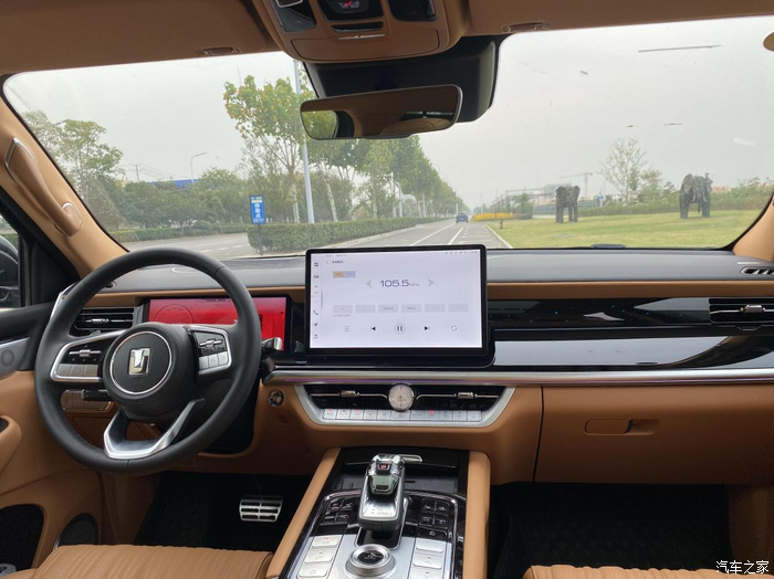 打开车门映入眼帘的便是充满豪华感的内饰,布局的话是传统的悬浮式T型设计,用料是皮质软包,尽显豪华感。