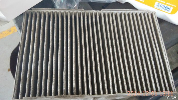 希望各位看官原谅哈。下面为更换下来的空调滤芯(累计有一年,但是9月出保前在4S索赔备件时,将此物用高压空气清理)武汉,大工地