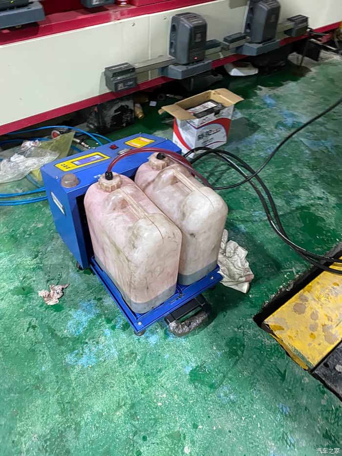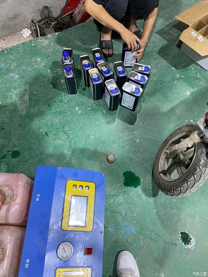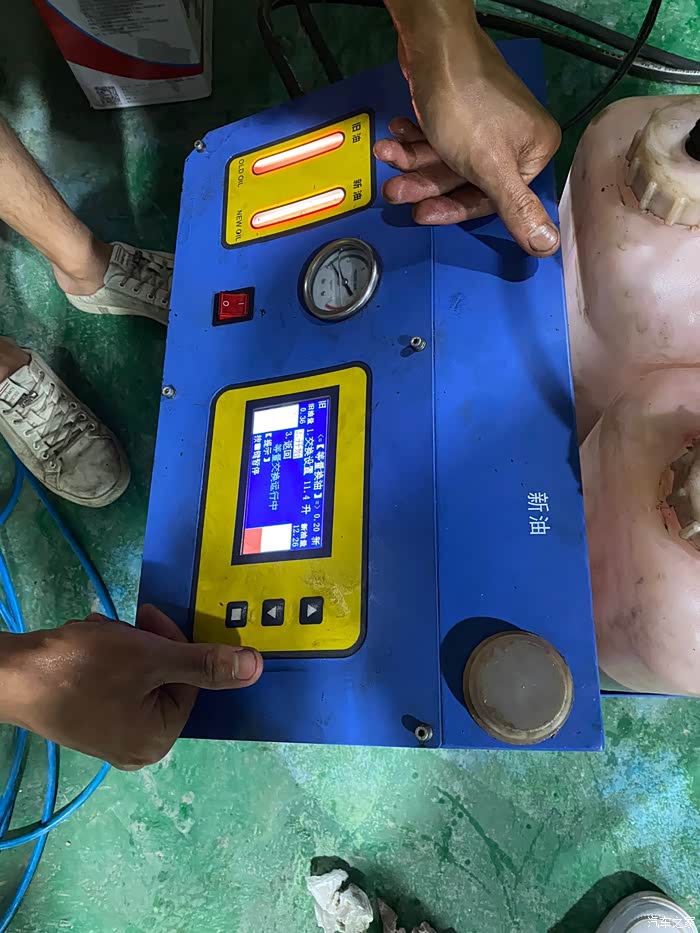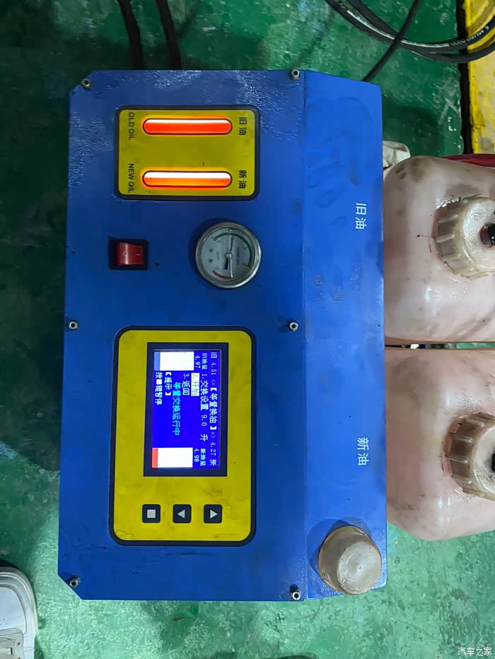 装好以后,着车状态下,循环机加注3L新油,剩余9升新油循环机置换爱信变速箱油内部9升旧油。