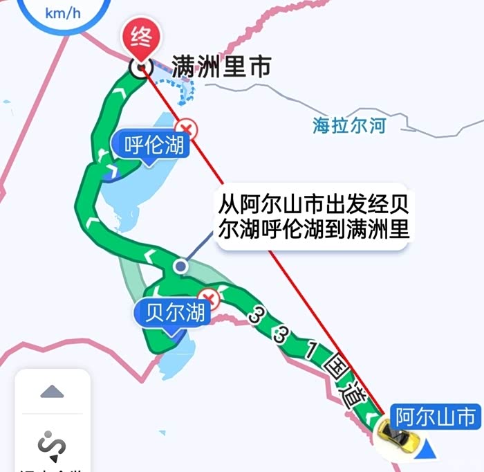 然后,从阿木古郎这里下G331,转去贝尔湖。