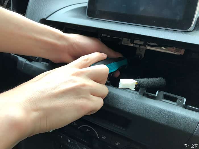 拔掉原车主机电源线束进行转接.