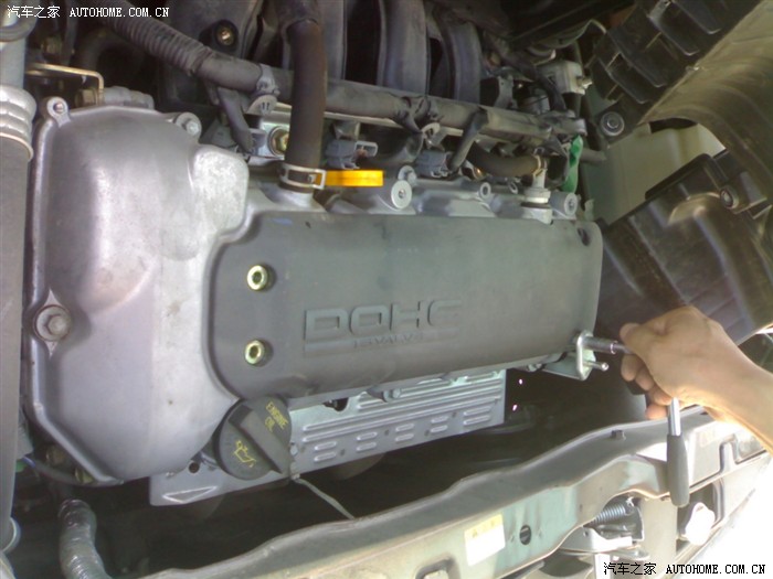 终于到了周末了,把车开到朋友那里,去掉了装饰罩的图片。准备开始安装火花塞,自己动手的。