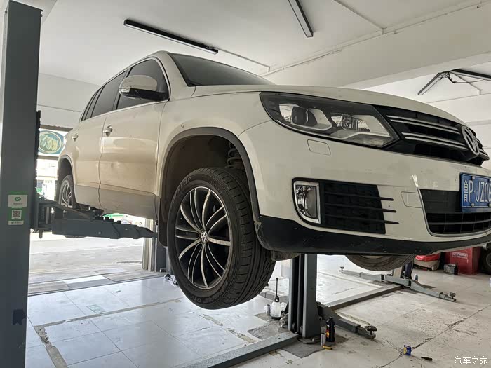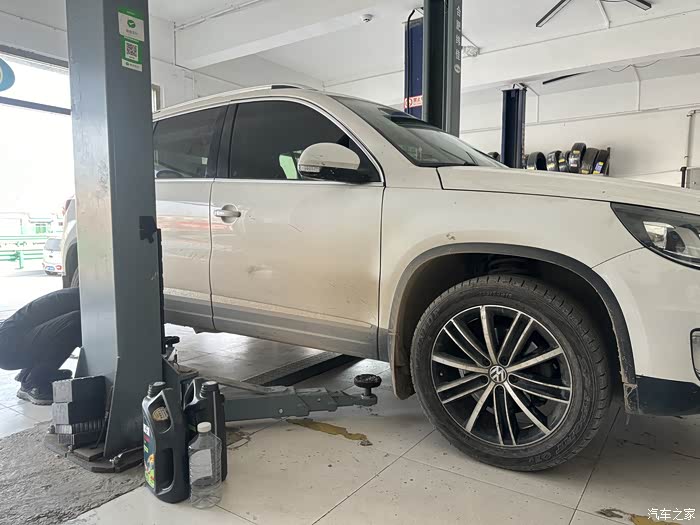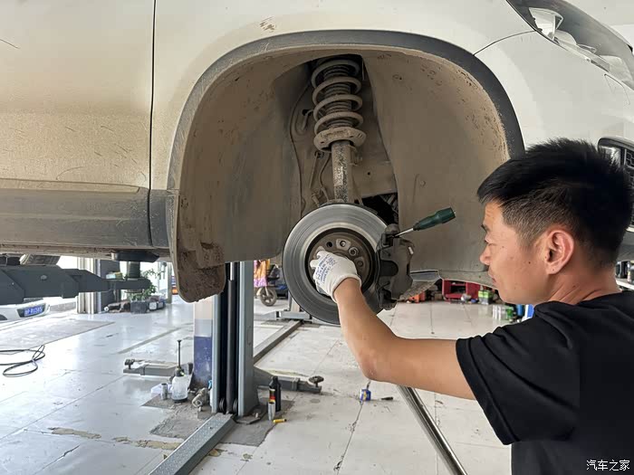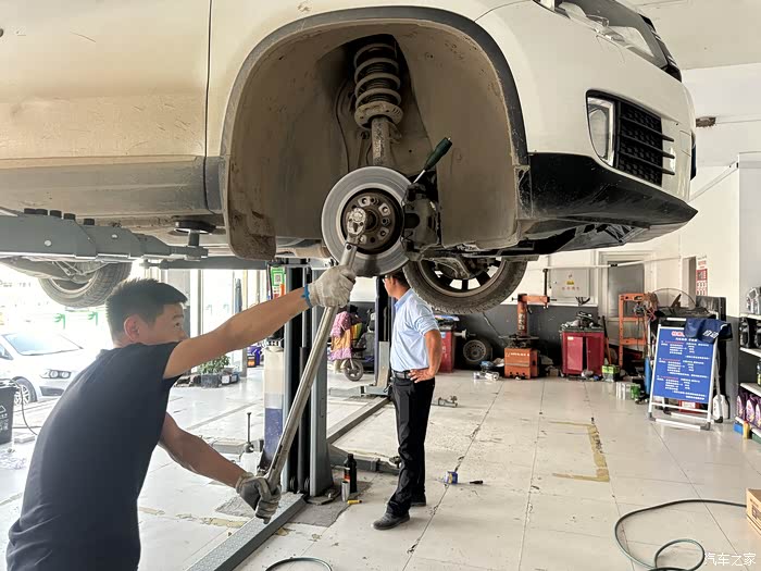 升起来车之后就是先把轮胎摘下来,方便后续的操作,技工师傅还是一如既往的踏实靠谱,我最近几年的维修基本上都是在这个店里完成的