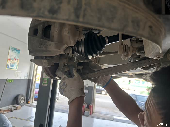 安装到位之后,检查一下安装过程是否有伤到球笼橡胶,这一步很重要,确保完好无损安装之后,可以进行下一步工作了