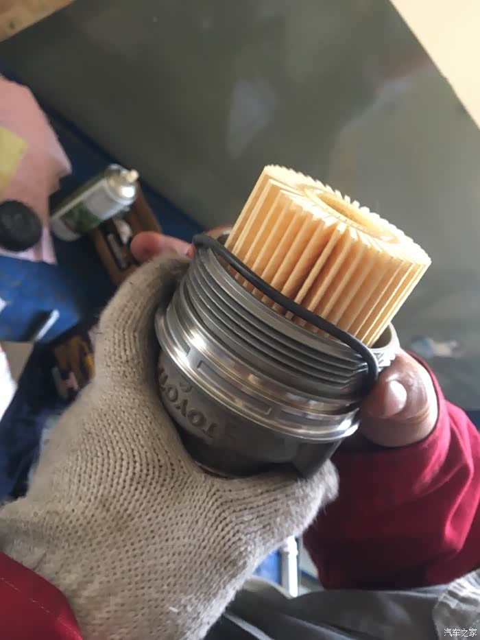 更换新的机油滤芯。密封圈也要同时更换哦。