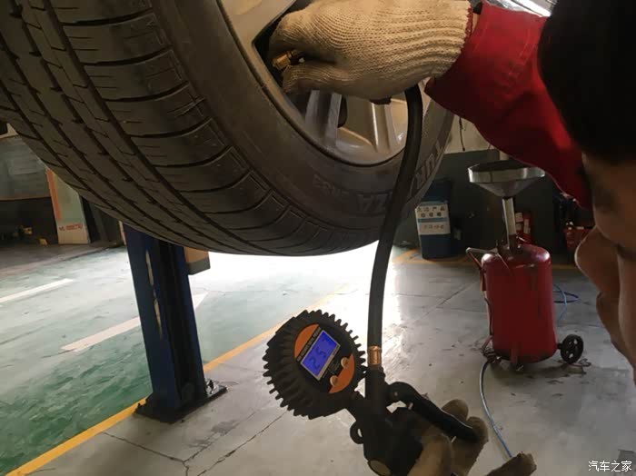 轮胎检查中。沟槽中的小石子都给剔了出来。