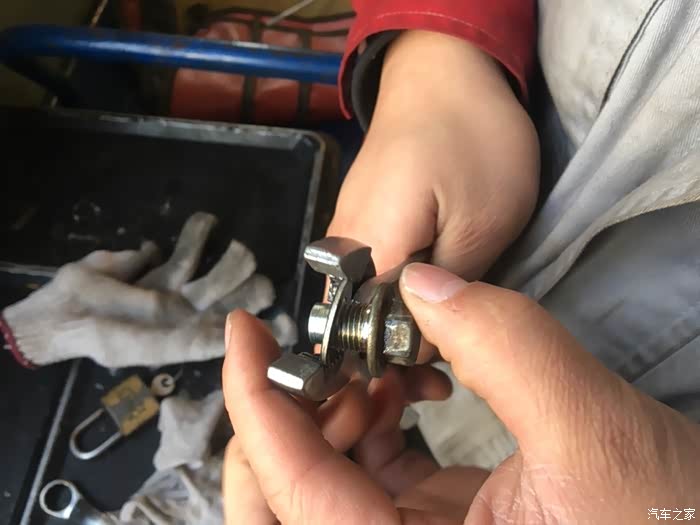 用钳子把放油螺丝上面旧的垫片取下来。更换一个新的垫片。