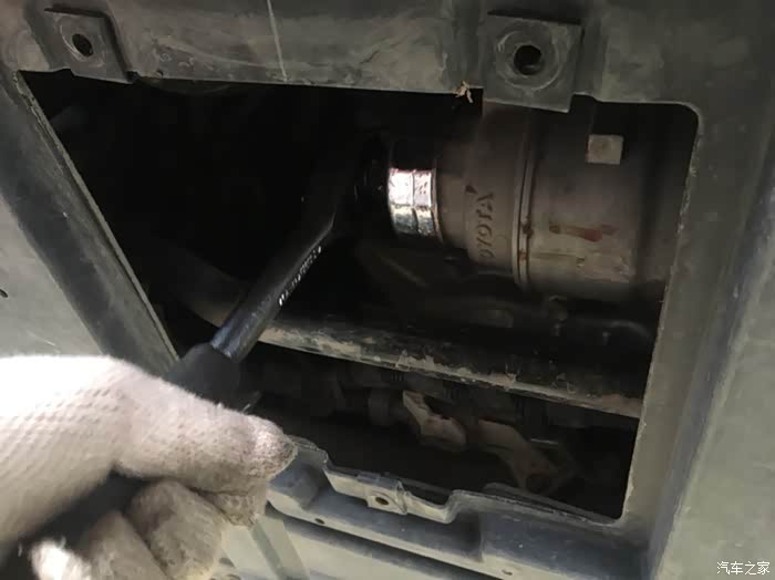 拆掉这个小护板。机油滤芯就隐藏在这里面。