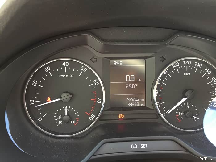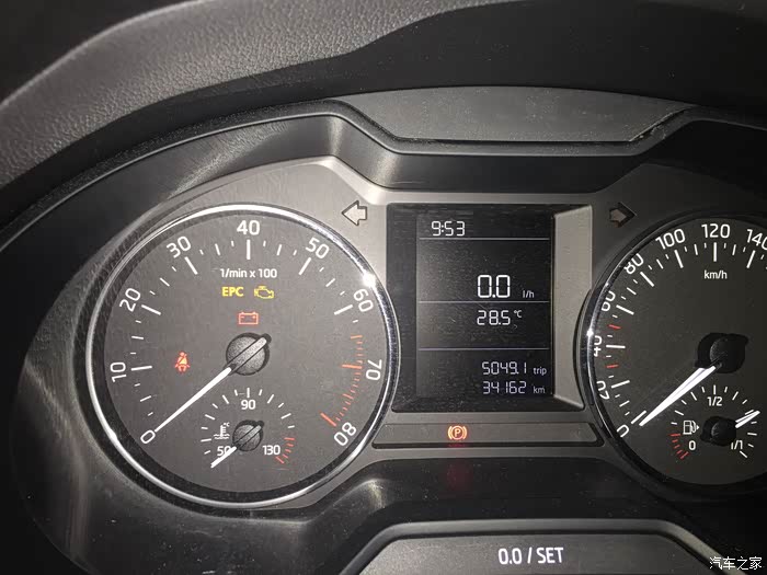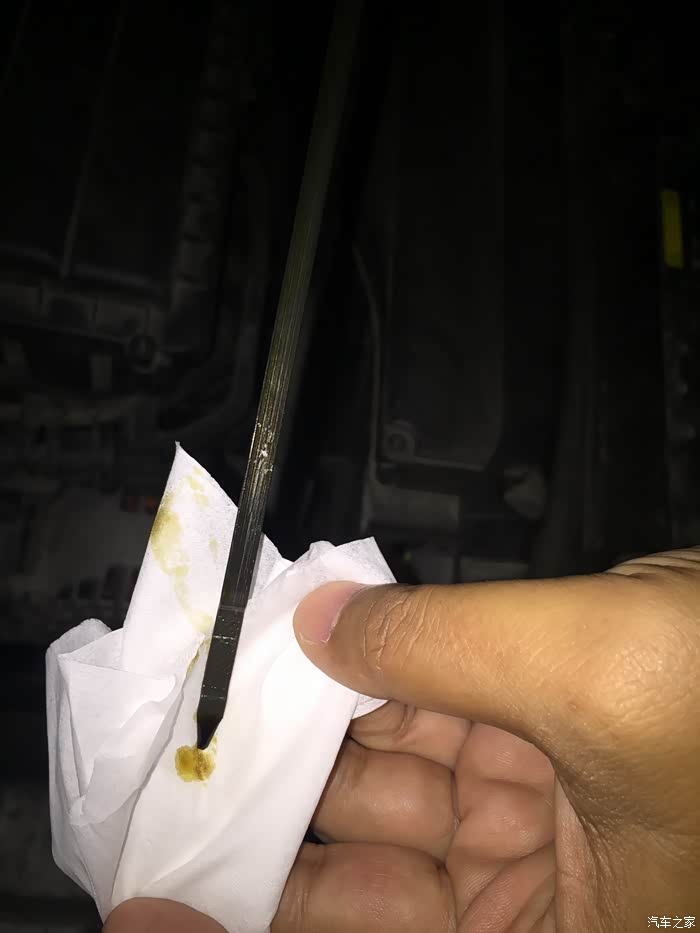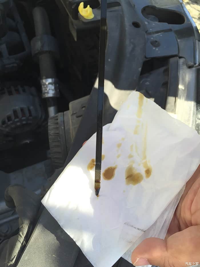 以下是我在旅游途中做的检测,仪表盘上的数字代表上期做保养时里程清零,如今可以看到4000公里时机油到了标尺下限位置,