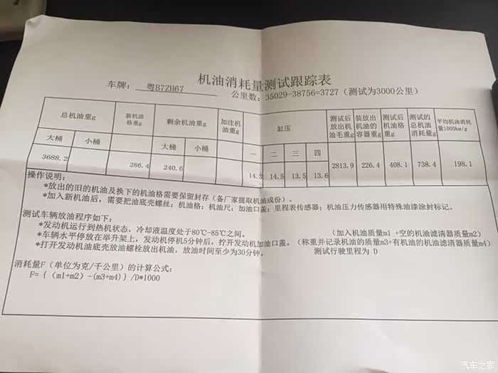 8月我回到深圳后重新在4S店里又做了一次机油称重,结果见下图,消耗机油198克/1000公里(按照机油密度0.945的标准,大约就是0.21升/1000公里),也就是相对于上次308克的结果,少了1/3,神奇吧,大众的发动机具有自愈功能啊,这个结果和我自己目测到的简直相差太大了!这样的结果厂家肯定也是不用说都是认为是正常的了。