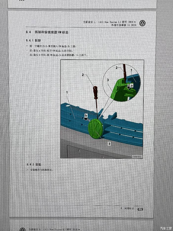 2016款途安L前中网LOGO拆装步骤,实际和21款有出入。
