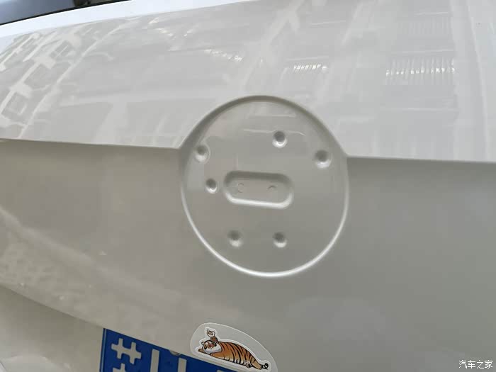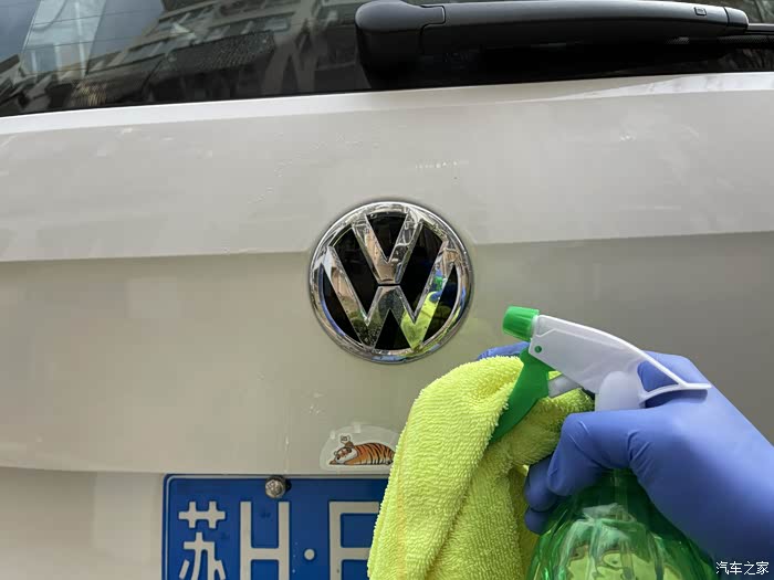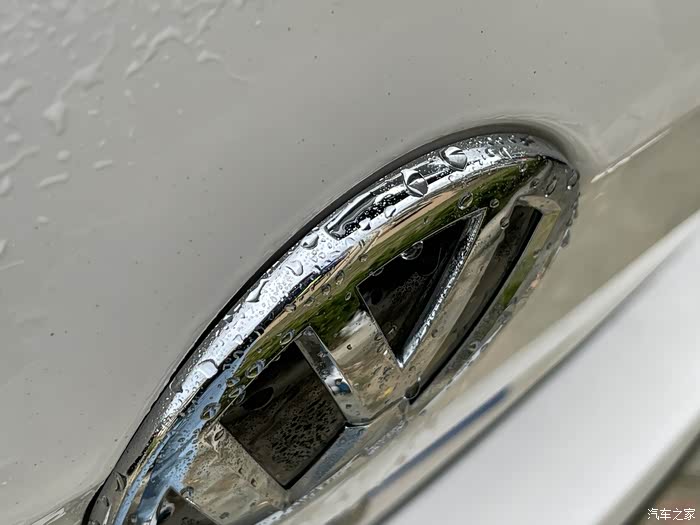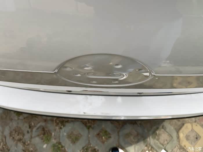 停在户外,车漆表面和车标缝隙里还是藏了不少灰尘。