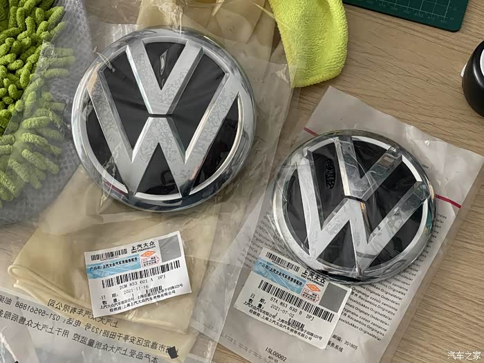 在心水了新款大众平面标小半个月后,终于在3月初在4S店订了一套新款前后标。