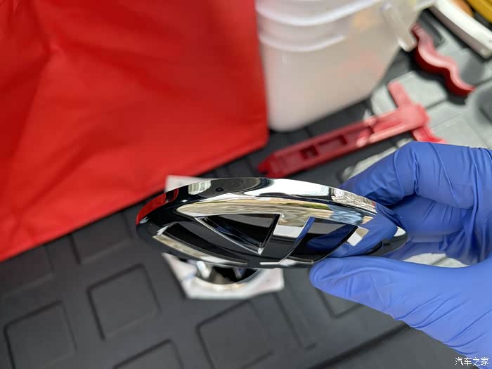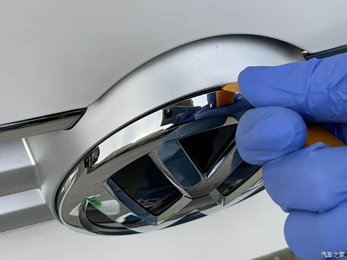 最后还是选了软撬棒探一下路,因为LOGO周围都是塑料,不敢轻举妄动。