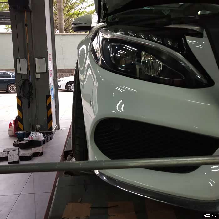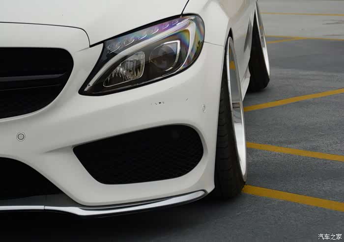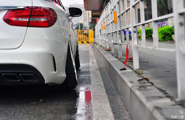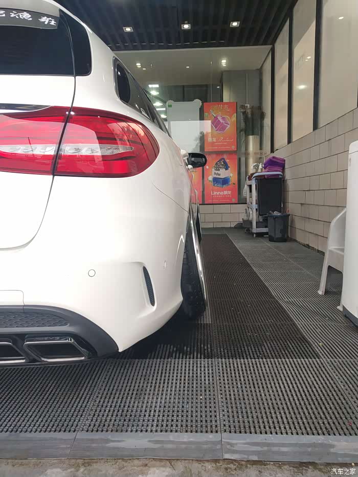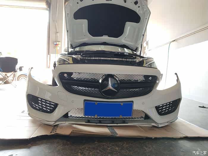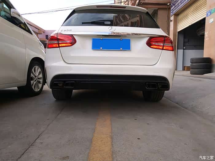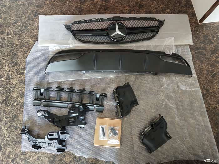 接下来就迎来了第一件改件:黑中网+实心标,AMG四出黑尾唇(祖国版,挺吻合的)