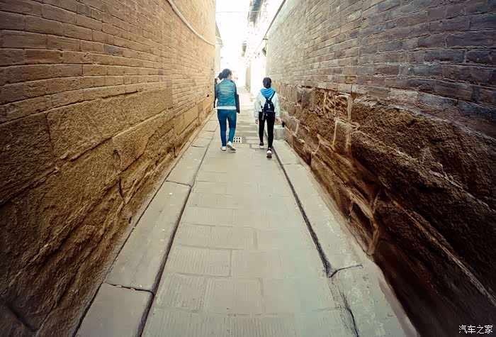 狭窄的巷道内,过弯的弯角被削去,很好理解,这样可以方便通过,不得不叹服古人的智慧。