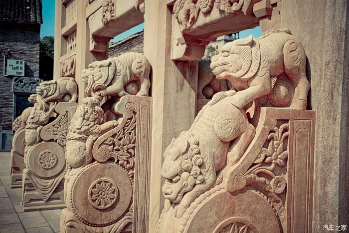 牌楼下方的神兽也特别有讲究,内外侧下方神兽一个头朝上一个头朝下,一定有特别的含义。