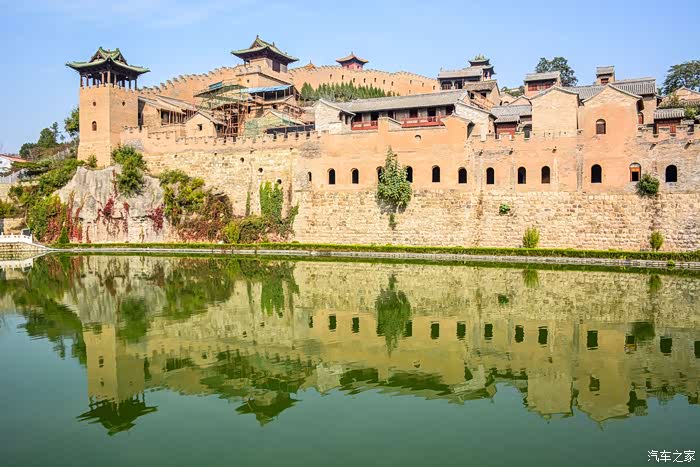 和皇城相府不同,湘峪古堡前有一条护城河,让古堡增加了一些秀丽。