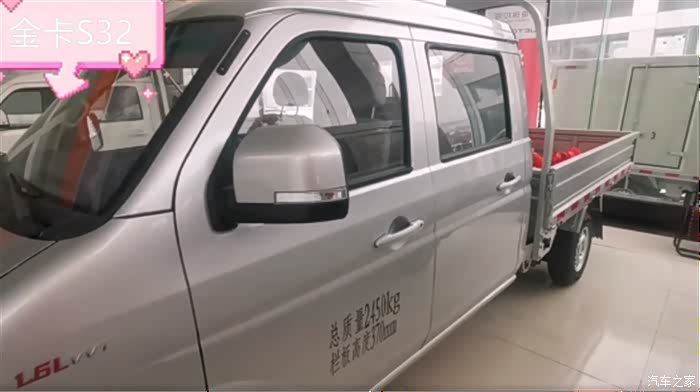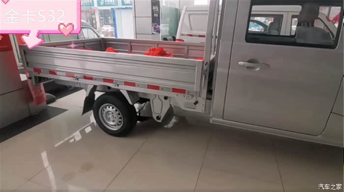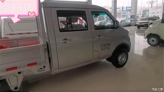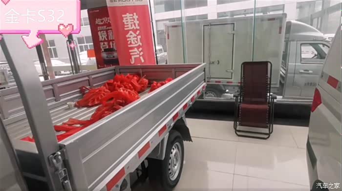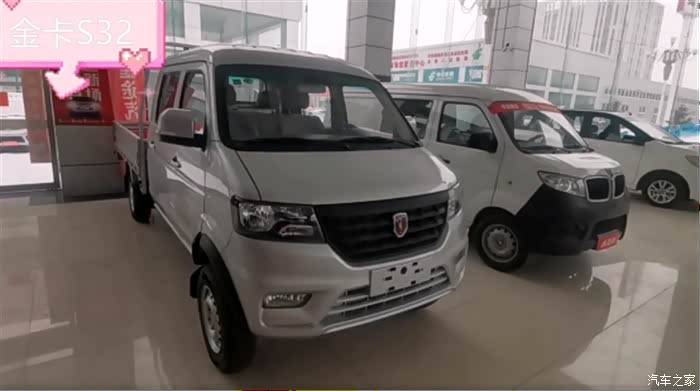2米55的栏板车(标准版),我定的与展厅这辆是同款,优惠了3千,裸车44900,预算之内挺好。先把定金交了,明天再带上老婆孩子我爸我妈来接车,全家总动员。到时候还得我爸开回家,因为我们要开车出来。驾控方面金卡S32也是得到老司机认可的,我爸上周是和我一起来看的车,他试驾了说感觉不错,动力足、方向轻、刹车也跟脚。