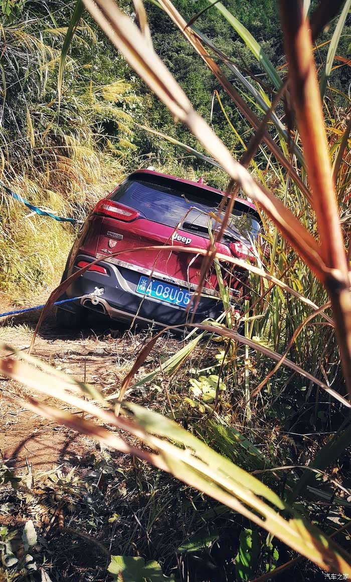 因为右前和右后轮挂在悬崖上了。连忙在当地越野群里呼救,