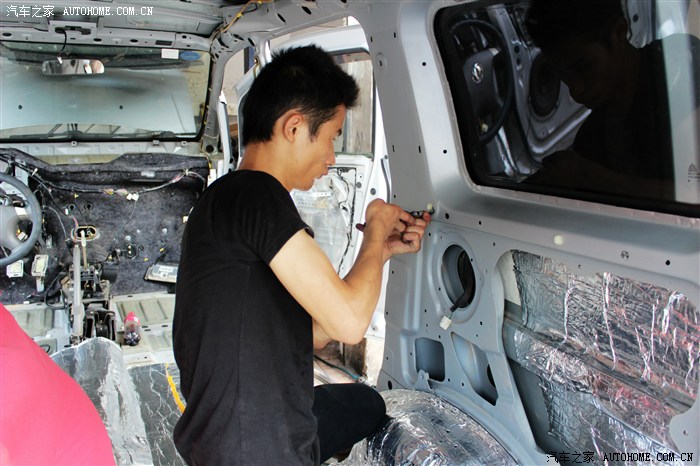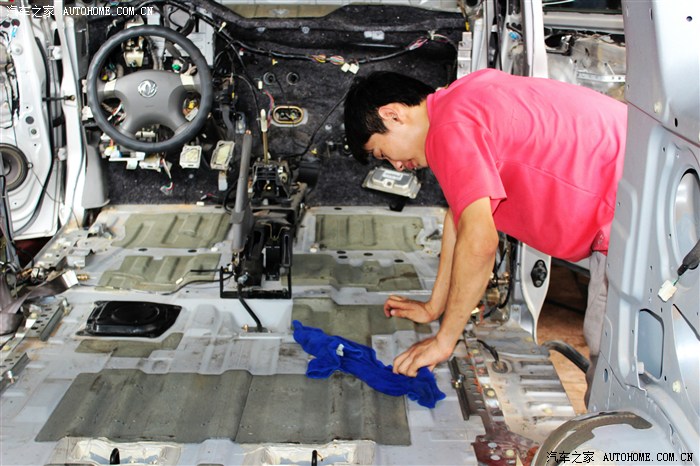 上抹布,隔音的过程也是一次彻底清洗车车的过程。