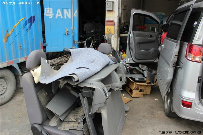 中控台,拆,继续拆。这里要提醒大家的是关于中控台的隔音,一定要找非常熟悉帅客的店家来拆,机关太多,不熟会坏事。但中控隔音又不得不做,阻止发动机噪音传入车厢的重要部分,这个都没做,就不能叫全车隔音了。