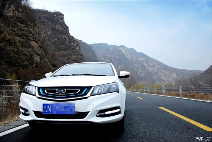 走过了盘山公路之后,就是一段相对来说平坦轻松点的路,停下来歇歇,专门跑到车前给帝豪EV300来了一张,颜值不错,走哪都有人瞅着。