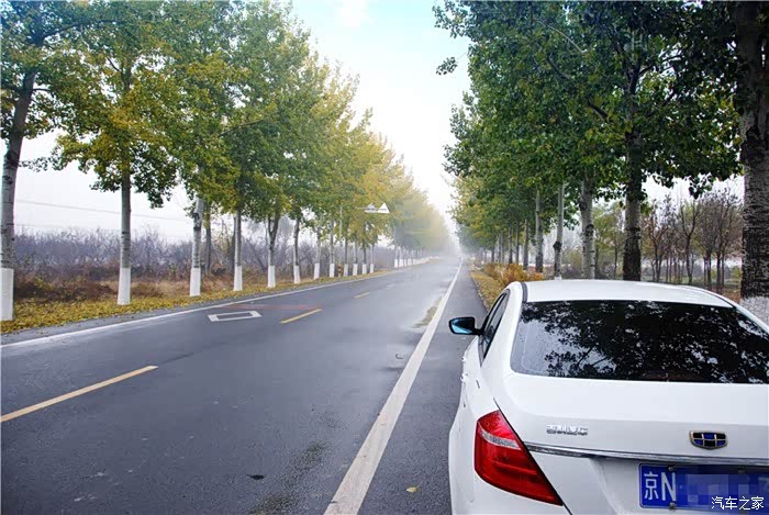 前一天给帝豪EV300美了个容,然后里里外外都检查一遍,确定可以放心上路了。出发时天还是阴蒙蒙的,一片灰色下只有它白的发亮,想不引人注意都难。查看了一下续航,278km,对于全程130km这样的距离来讲,帝豪EV300完全不用担心。
