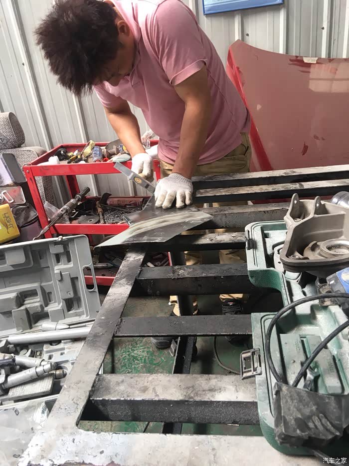 跟师傅说有点急,就盯着他们拆车,希望工期能缩短一点